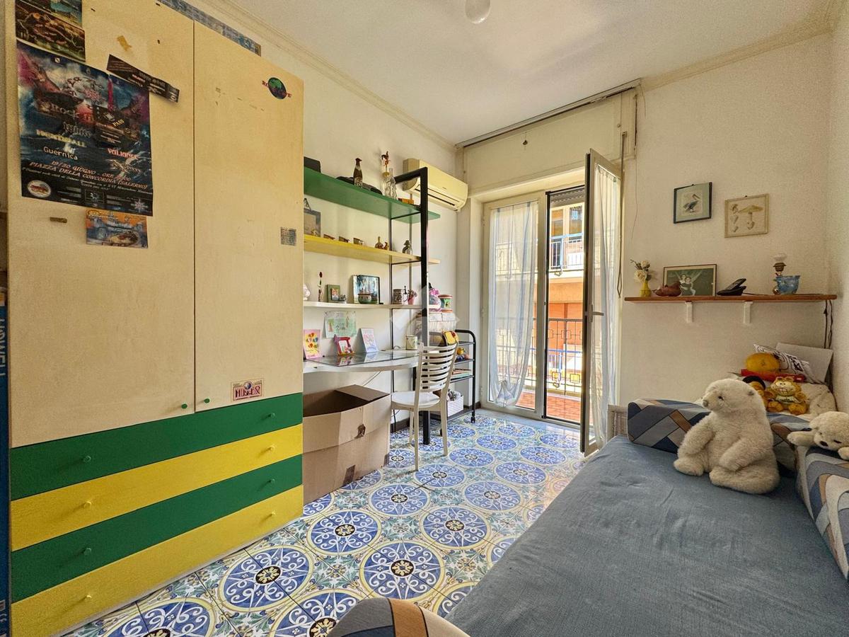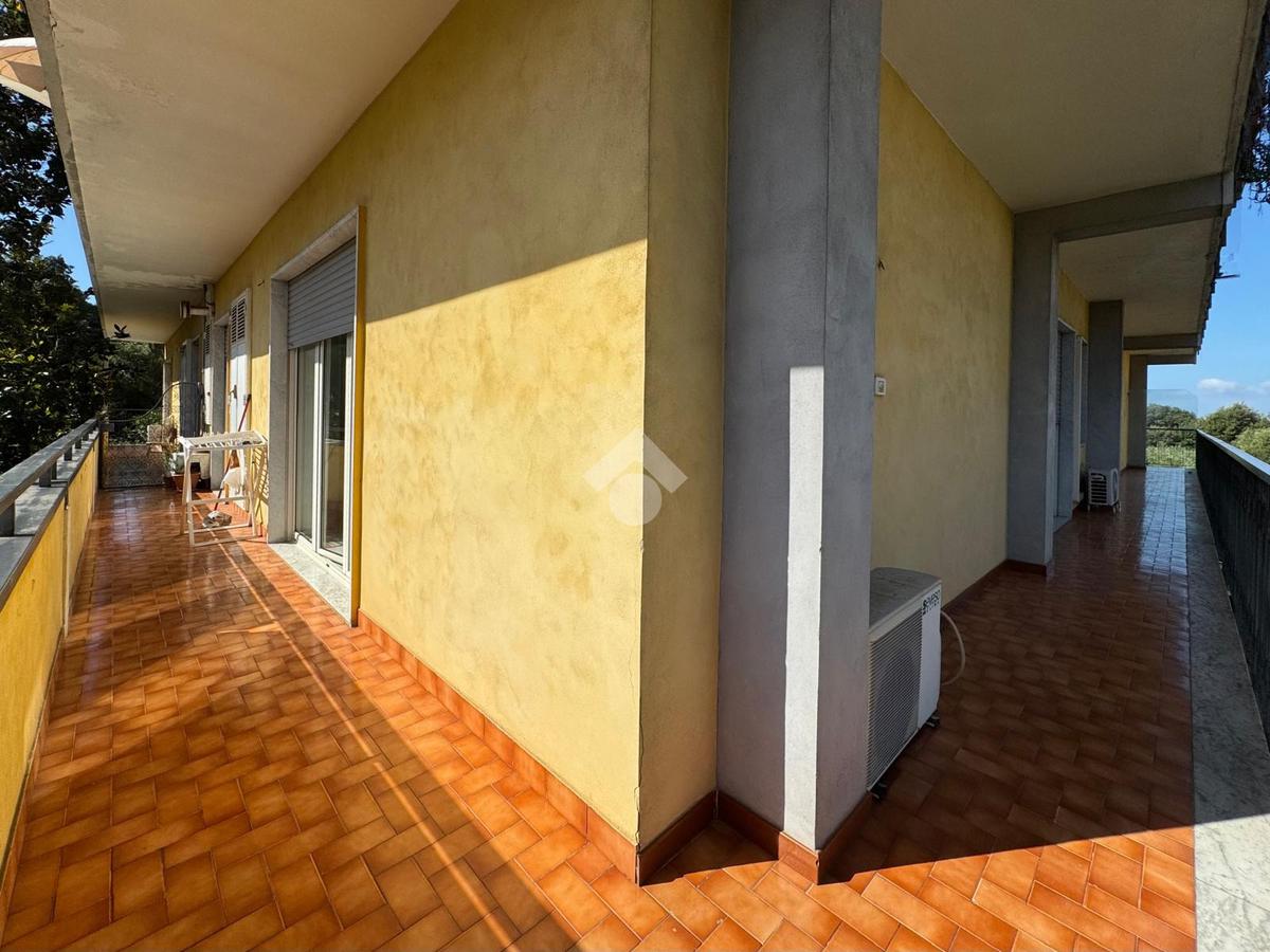 Entrando nell'immobile l'ingresso ci da subito accesso alla cucina abitabile, a seguire un ampio salone e dal corridoio abbiamo accesso alla cameretta, cametra matrimoniale e bagno con finestra. Tutti gli ambienti della casa, ad esclusione del bagno, sono serviti da un'ampia balconata che percorre tutto l'immobile, con gradevole affaccio sul verde e vista Vesuvio. Conclude la soluzione una cantina di proprietà di circa 9MQ nello stabile e possibilità di posto auto coperto.