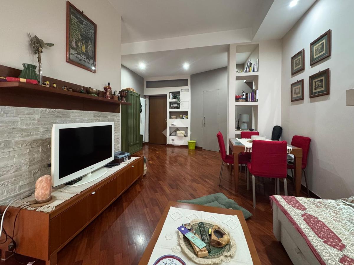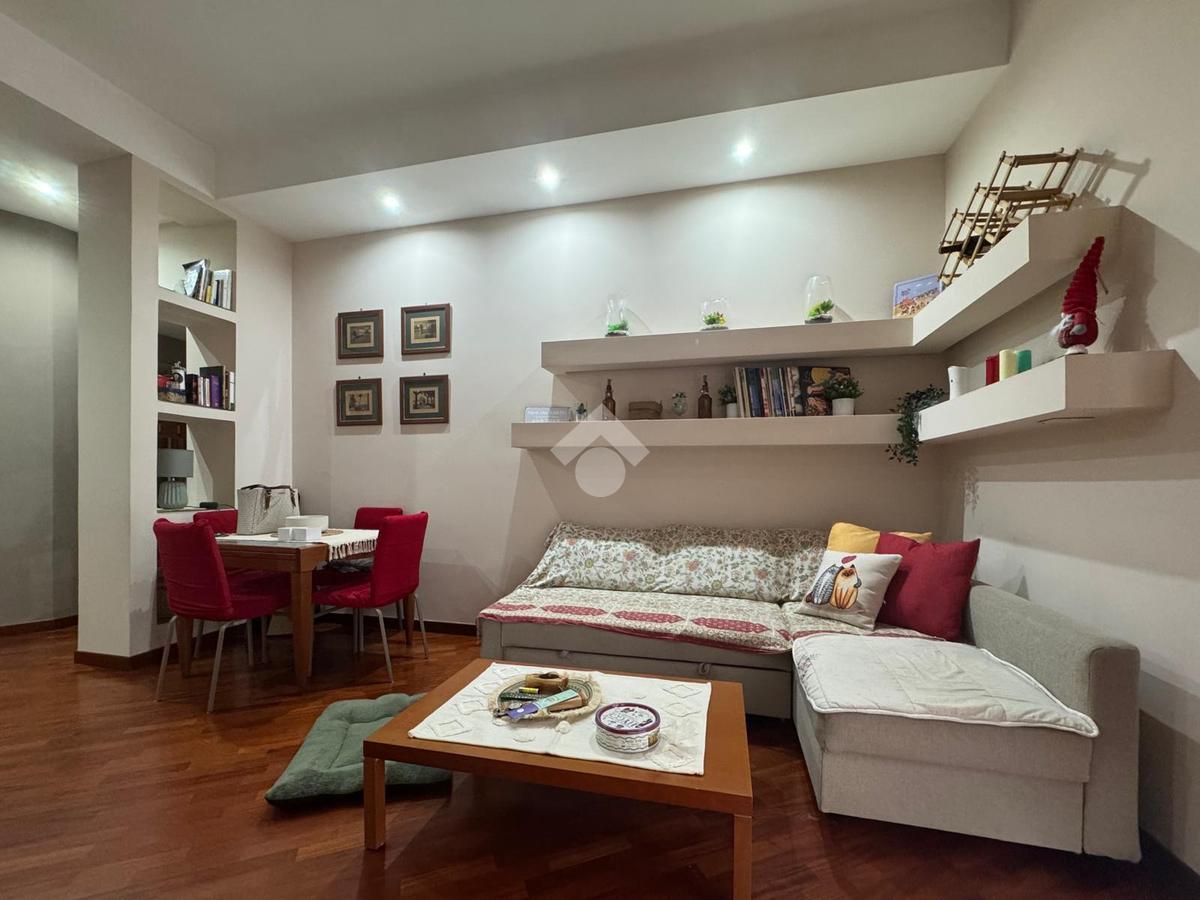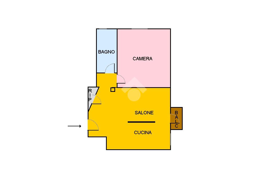 L'immobile è composto da uno spazioso ambiente living, servito da balcone con affaccio tranquillo su strada privata, e un punto luce che serve la cucina. A seguire camera matrimonale servita da finestra ed un bagno con vasca, anch'esso servito da finestra, compreso di ripostiglio aereo. Conclude un comodo ripostiglio.