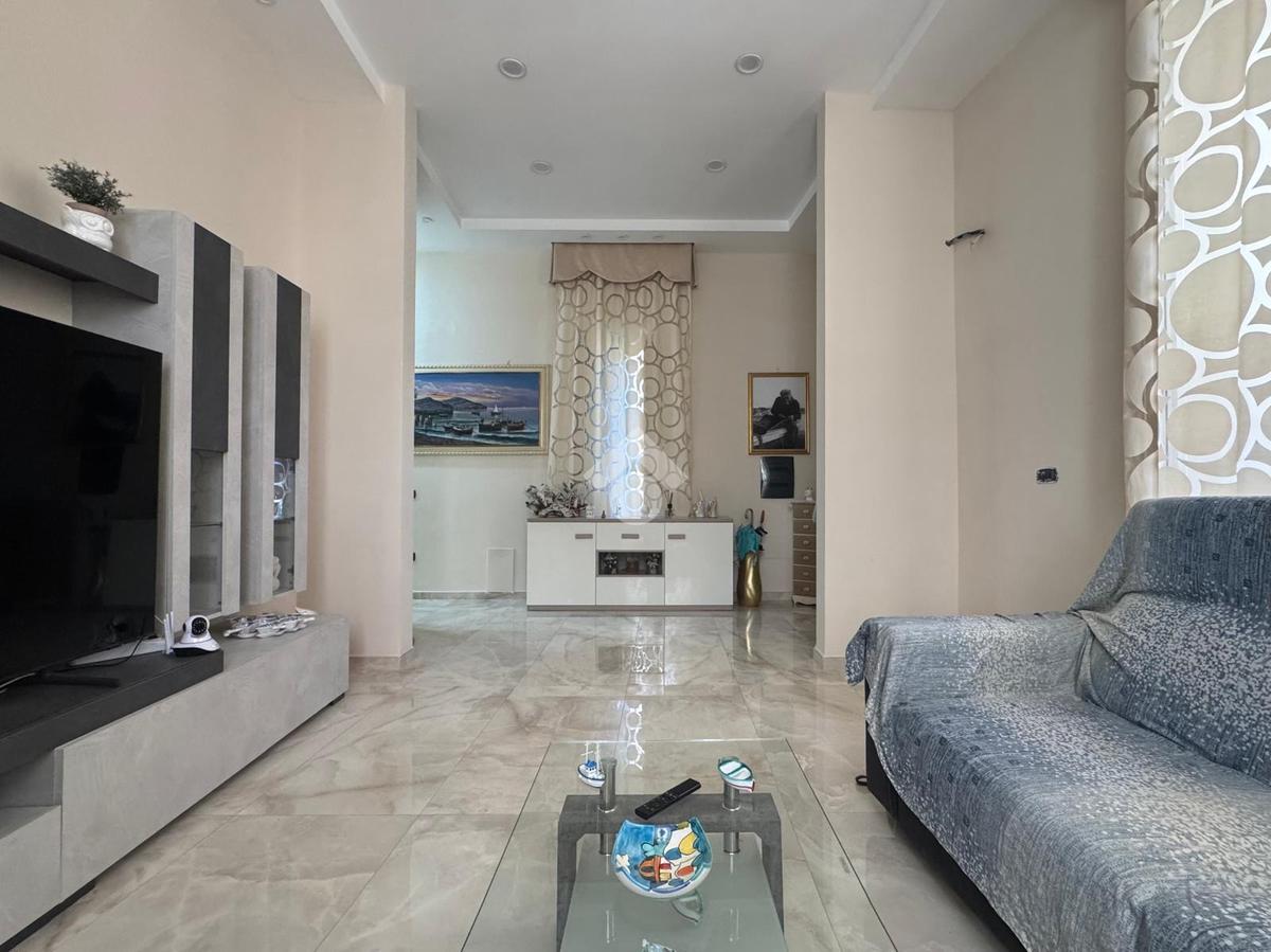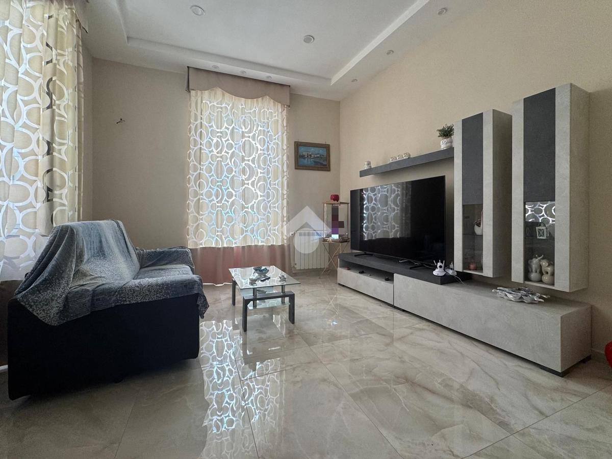 Il piano rialzato, di circa 70MQ, è composto da un salone luminoso (dove è possibile ricavare un'ulteriore cucina), con doppio punto luce e balconcino, un ampio bagno finestrato e due camere da letto, una con finestra ed una con balcone e cabina armadio finestrata. Dal corridoio abbiamo l'accesso al piano seminterrato, di circa 80MQ, che da un piccolo disimpegno con punto luce accede alla zona living, composta da un ampio salone con cucina, con doppio accesso su un ulteriore balconcino, una spaziosa camera con doppio punto luce ed un bagno cieco.